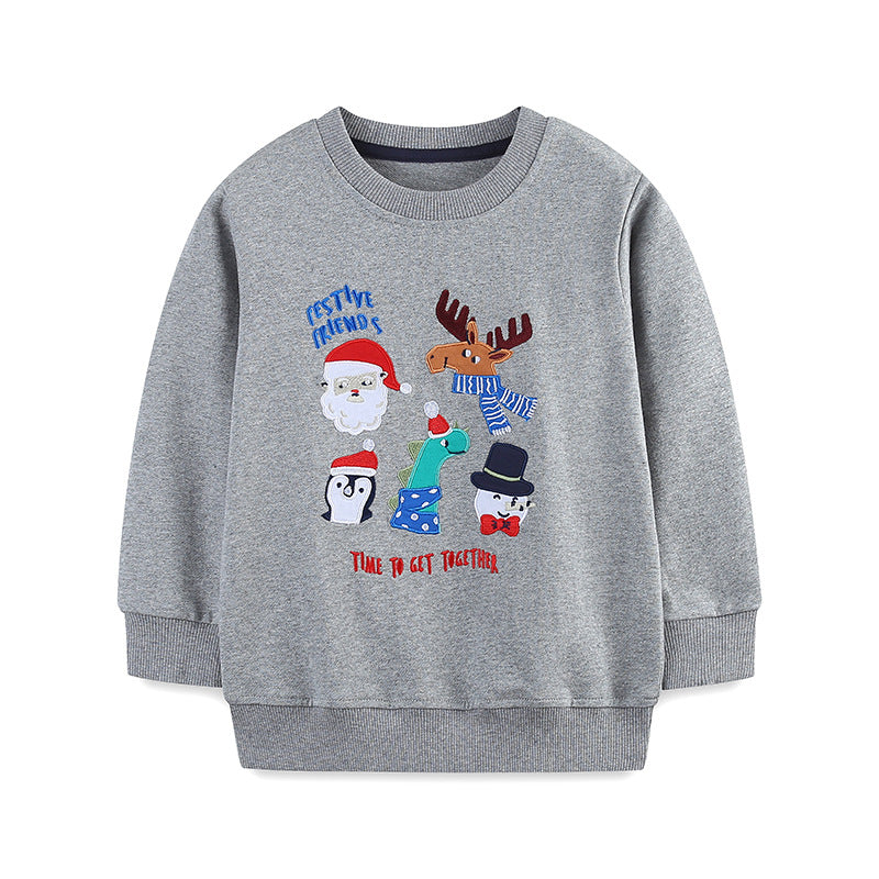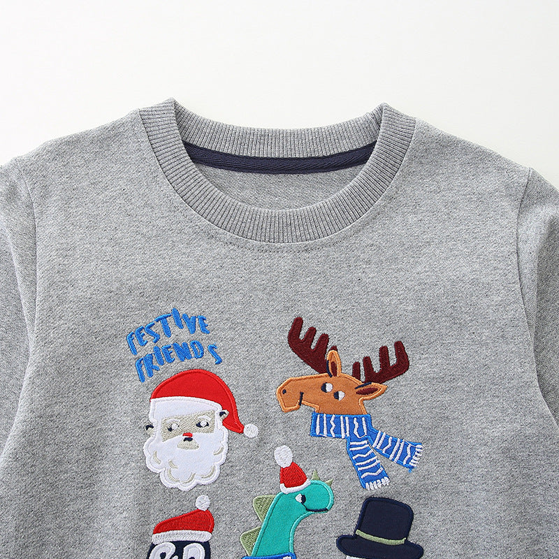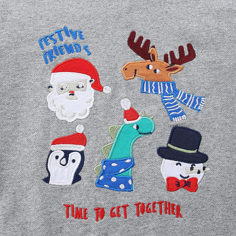 Cartoon Christmas Embroidered round Neck Long Sleeve Sweatshirt
