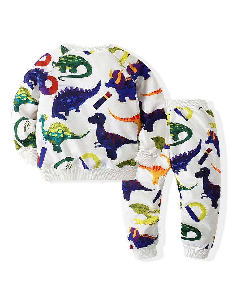Dinosaur Printed Sweat Casual Pants Two-Piece Set