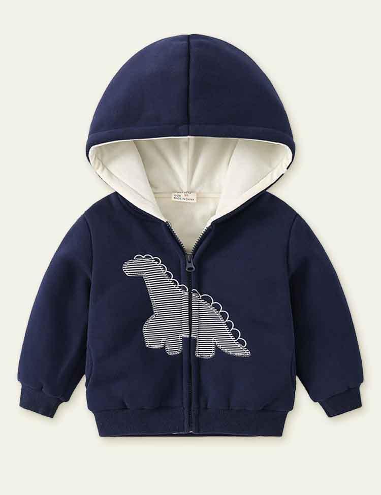Little Dinosaur Appliqu¨¦ Hooded Zip Jacket