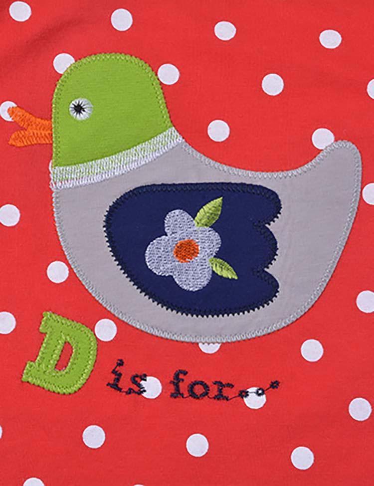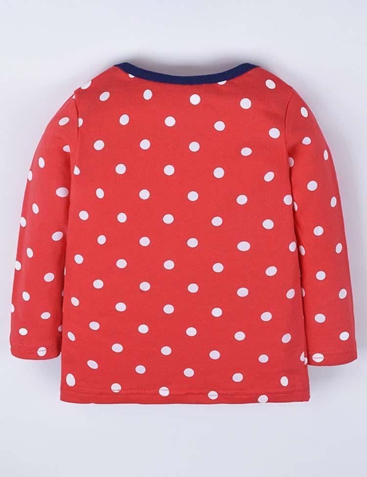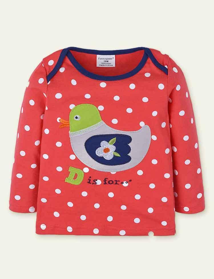Toddler Girl Bird Emboridered Polka Dots Long Sleeves Shirt