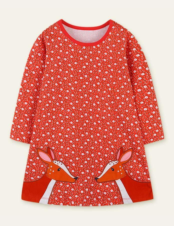 Deer Appliqu¨¦ Long-Sleeved Dress