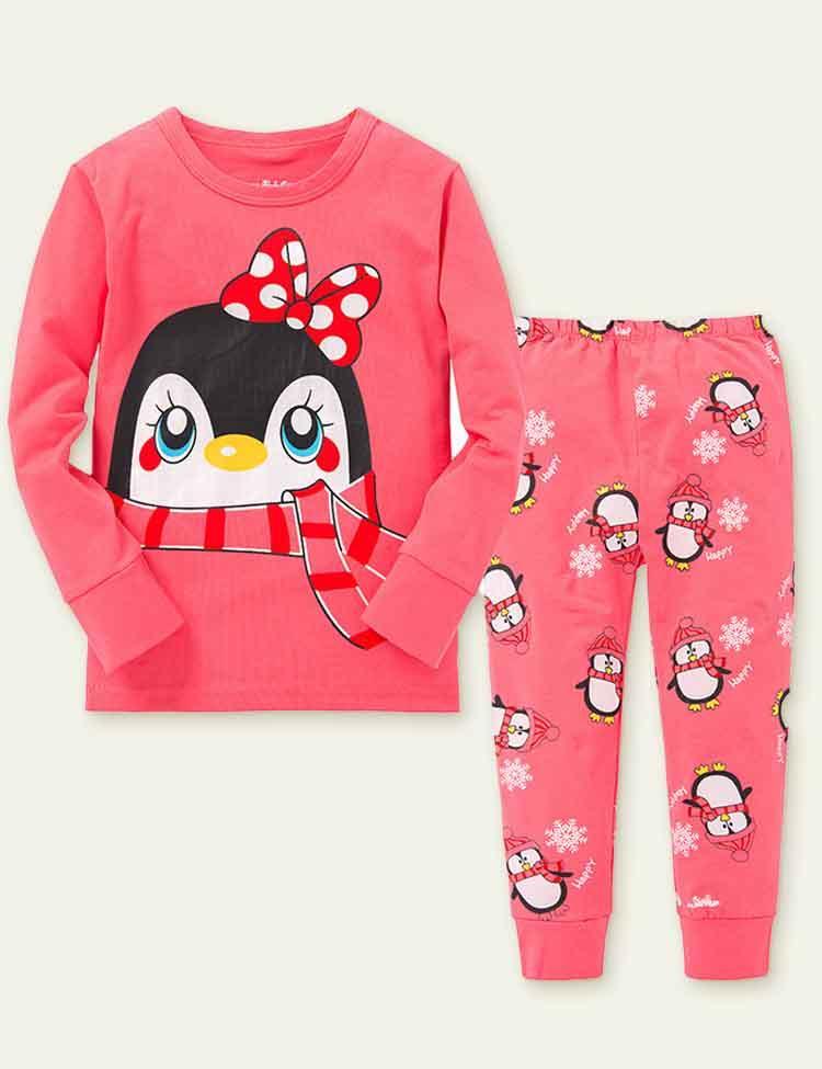 Toddler Penguin Printed Long Sleeves Shirt & Pants Pajamas Set
