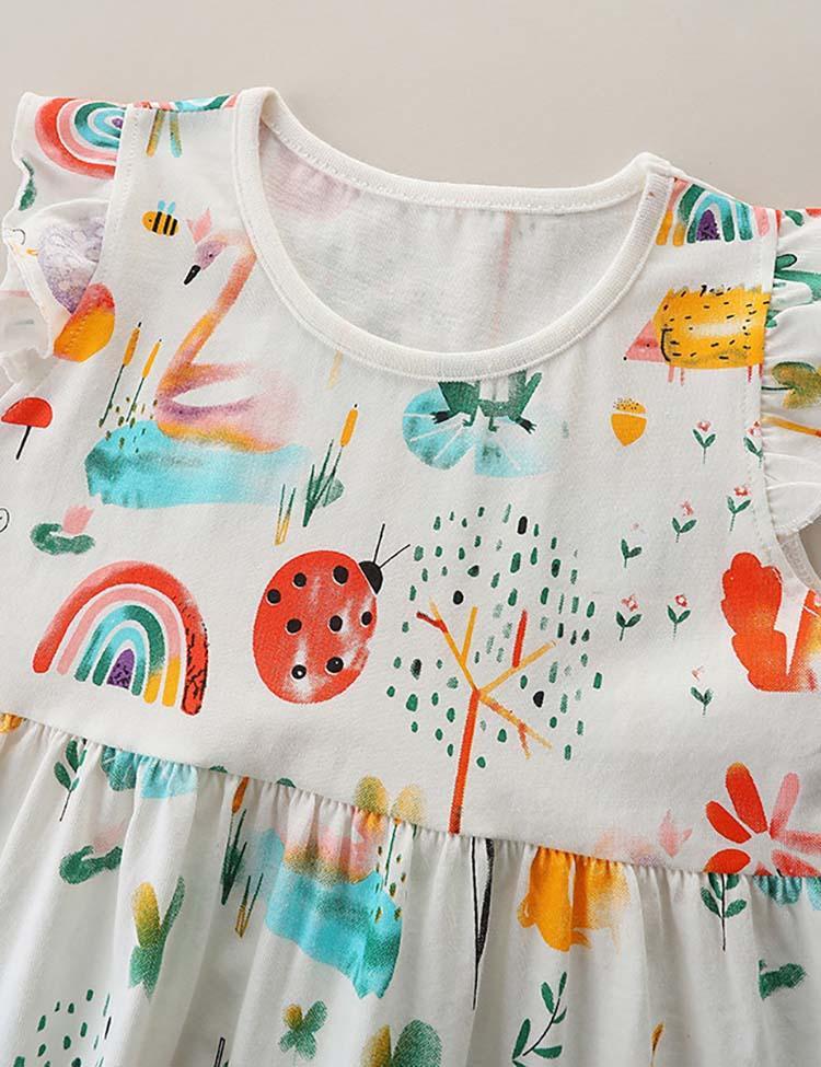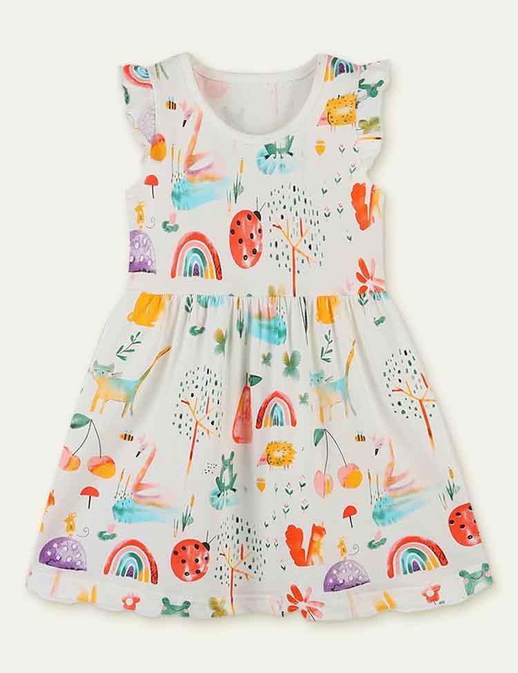 Toddler Girl Animals Printed Flutter-sleeve Dress