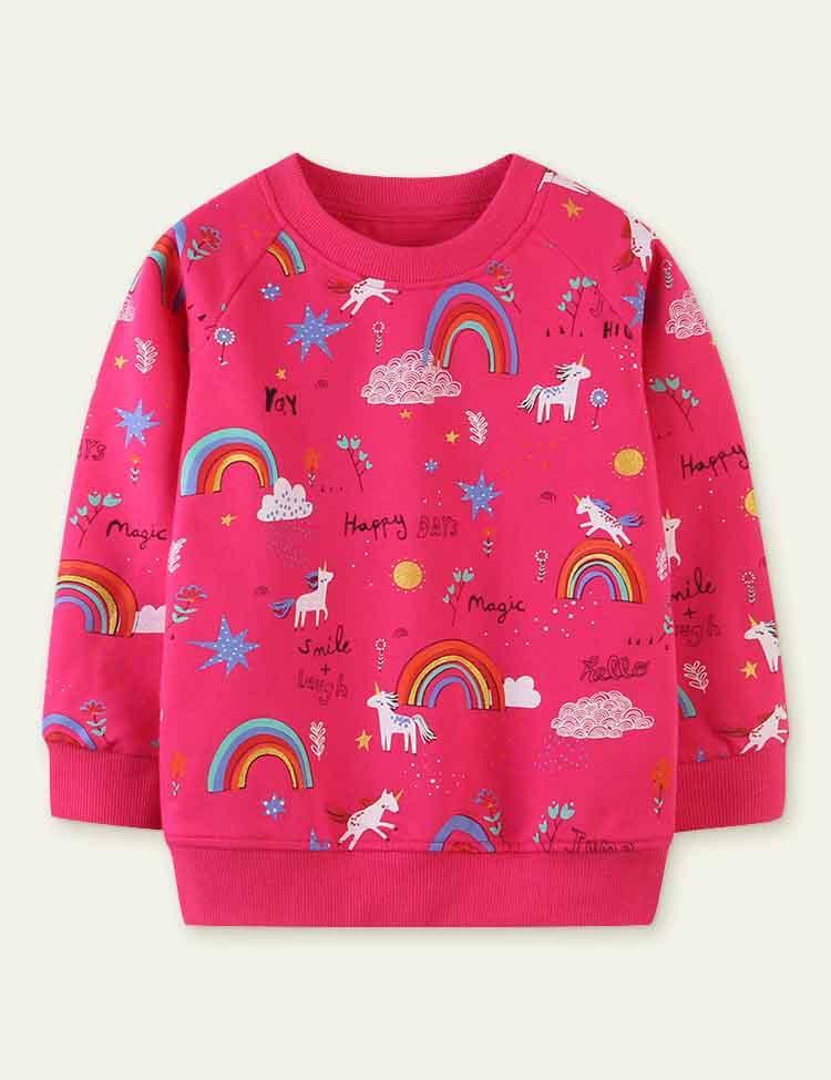 Rainbow Clouds Pony Print Terry Long-Sleeved Sweater