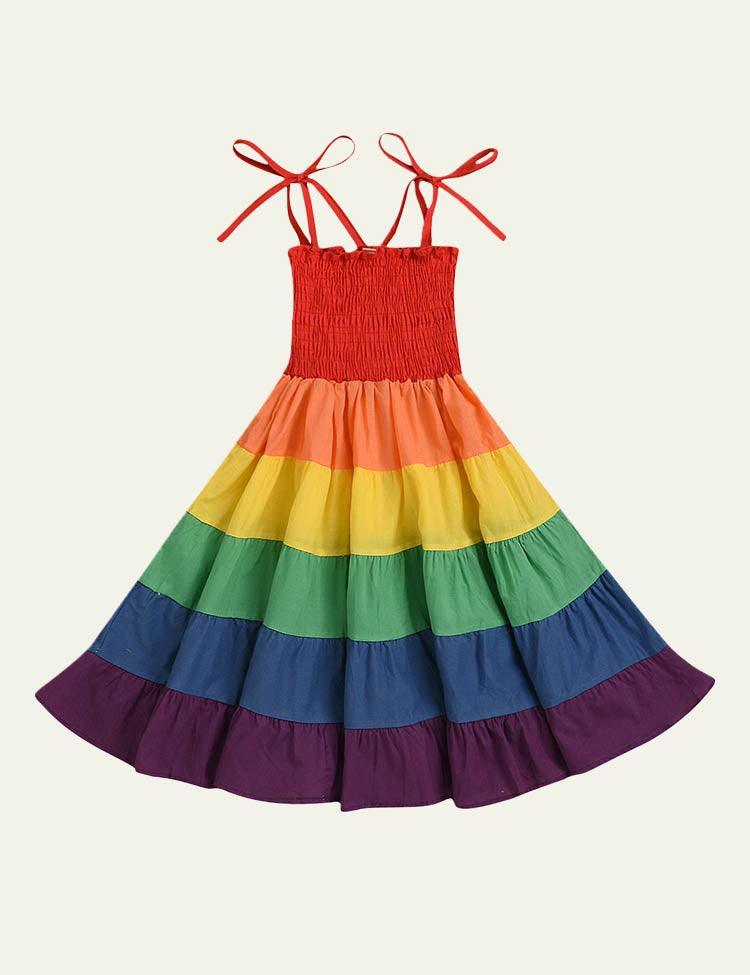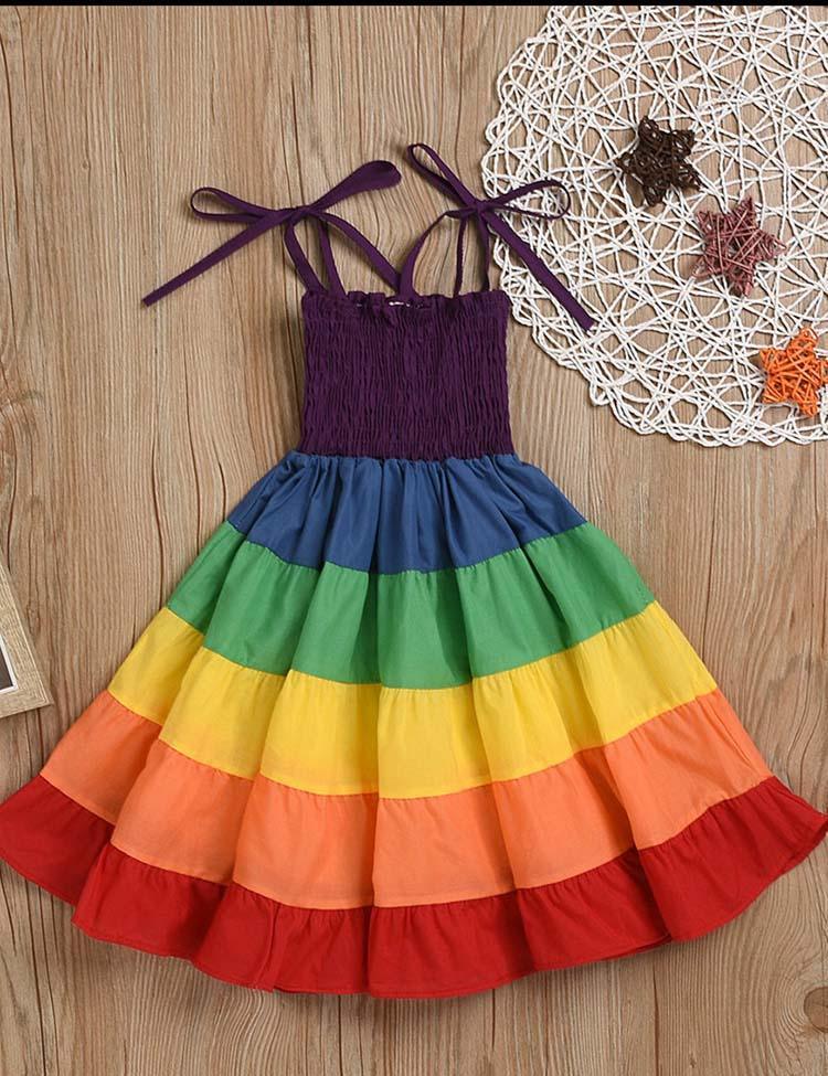 Toddler Girl Splice Rainbow Hem Design Strap Dress