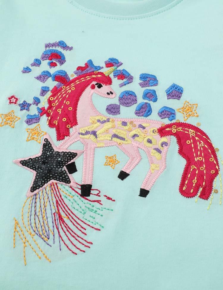 Toddler Girl Unicorn Embroidered Long-Sleeve Casual Shirt