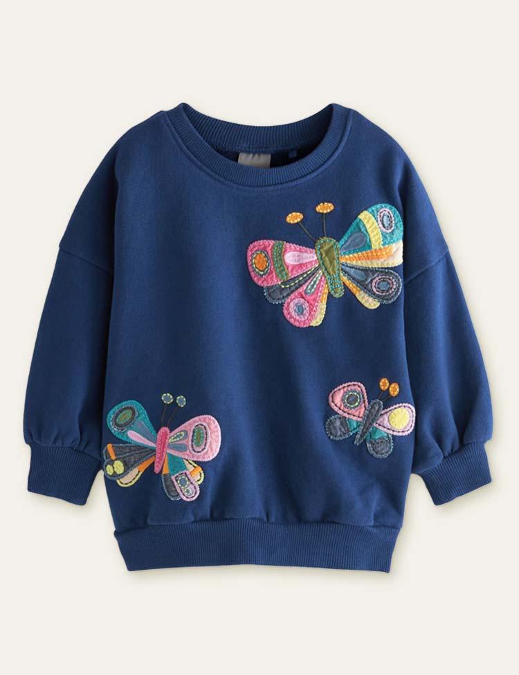Butterfly Appliqu¨¦ Long Sleeve Sweatshirt