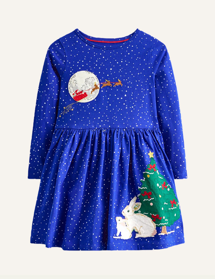 Christmas Sale- Dress Santa Claus Embroidery Girl Dress