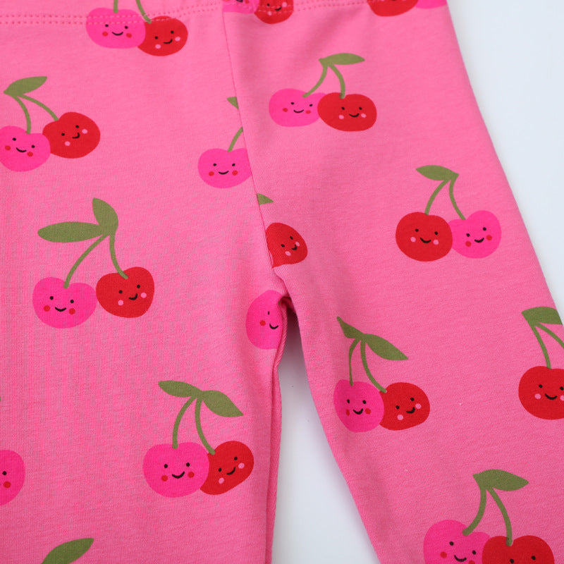 Girl's Cherry Full Printed Trousers