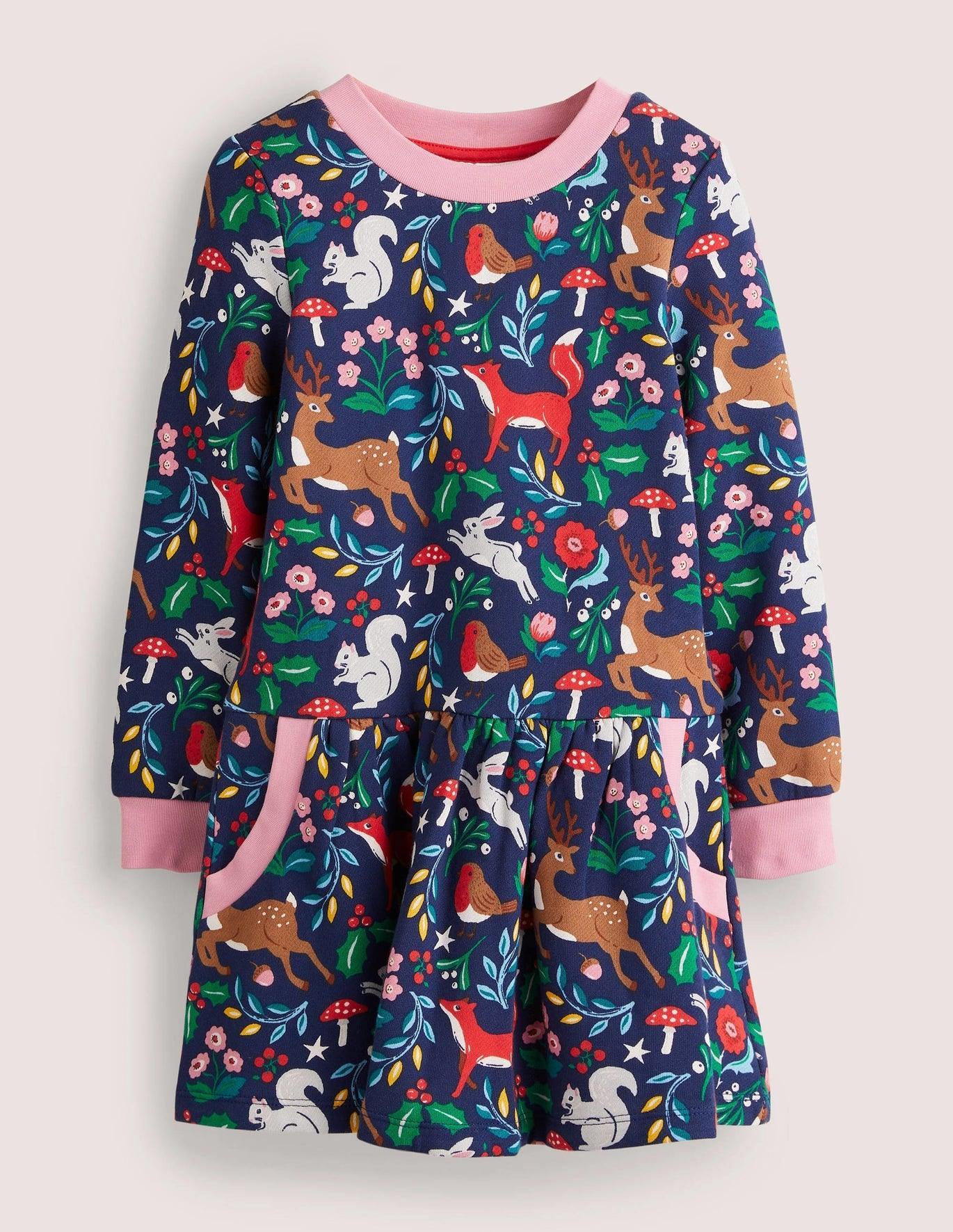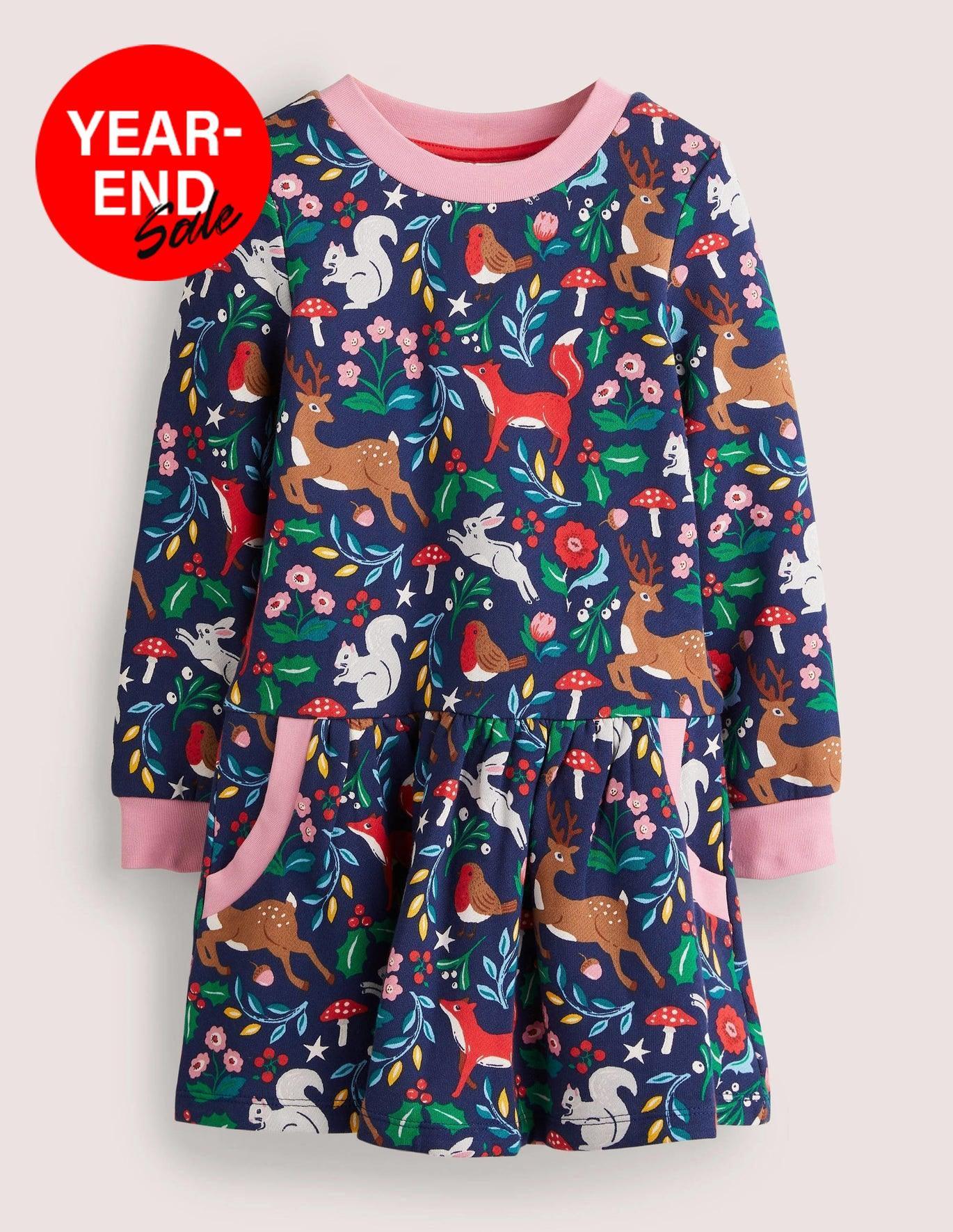 Lucky Sale -Toddler & Kid Girl Festive Animals Print Sweatshirt Splice Dress
