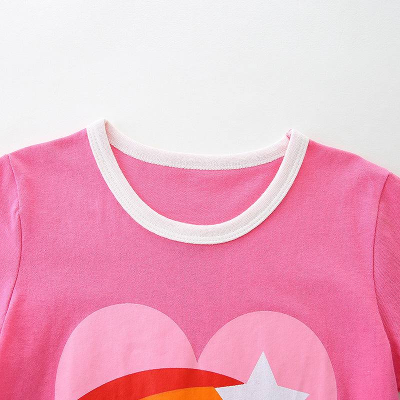 Heart Rainbow Printing round Neck Short Sleeve Top