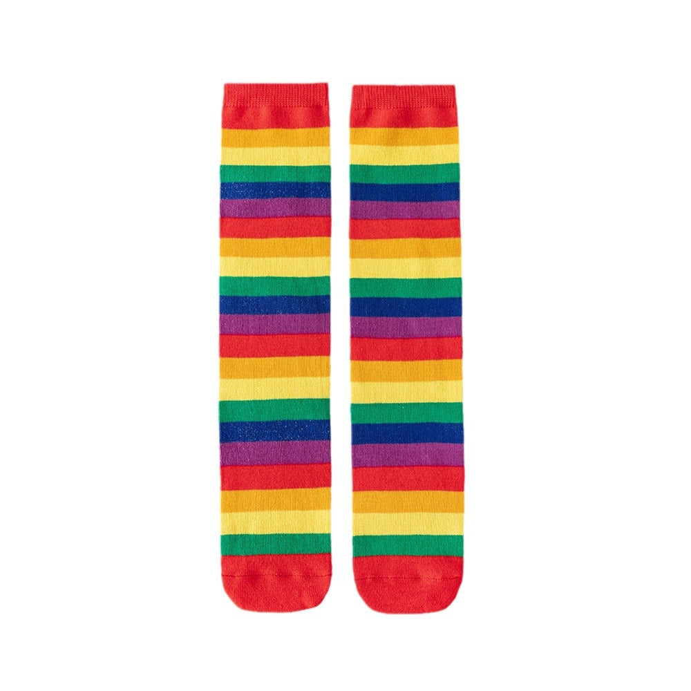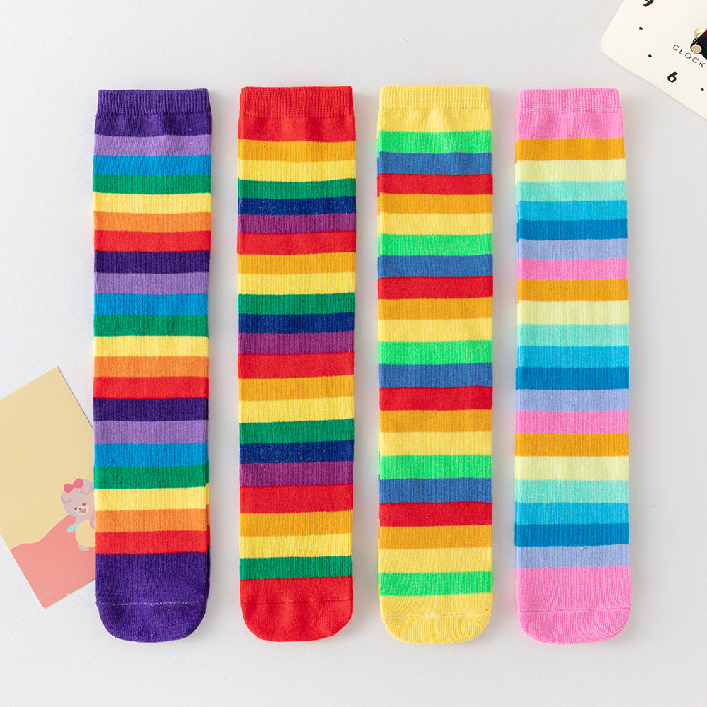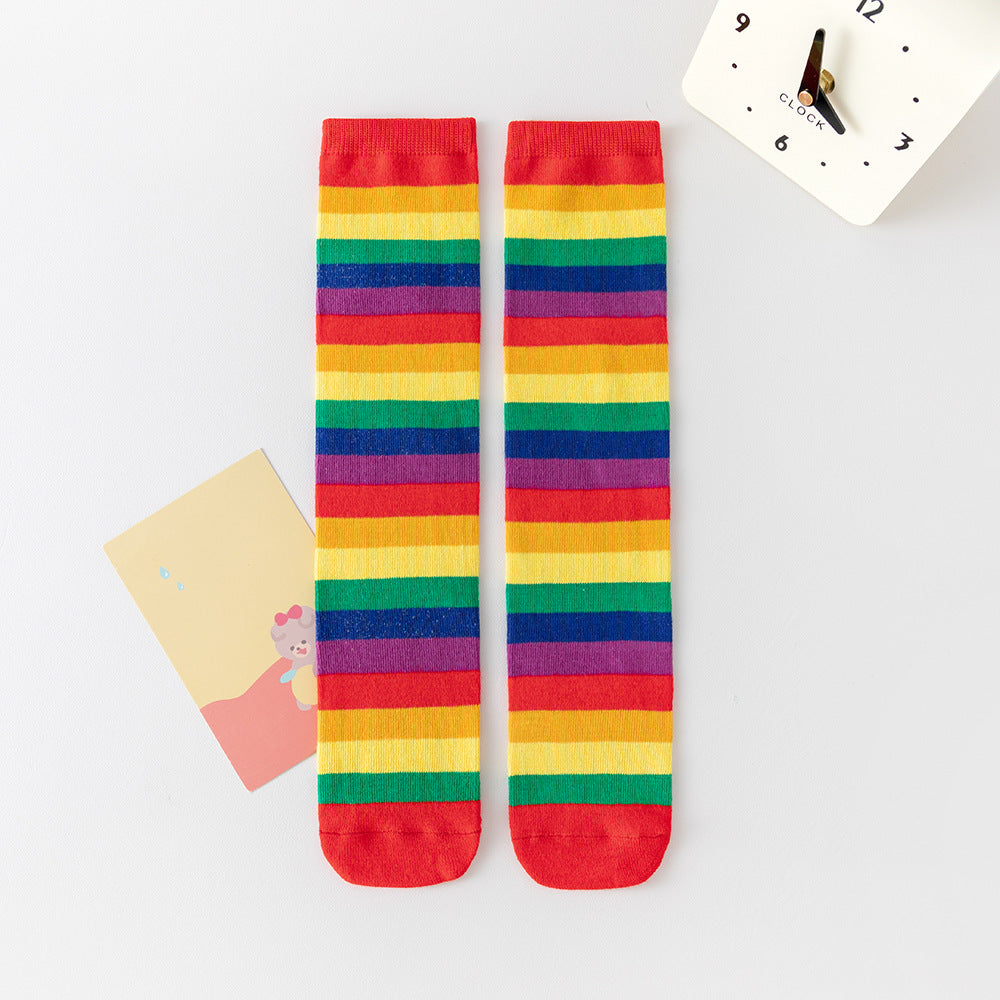 Rainbow striped mid-calf socks and knee socks for children autumn and winter