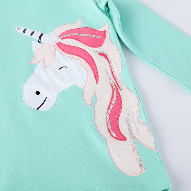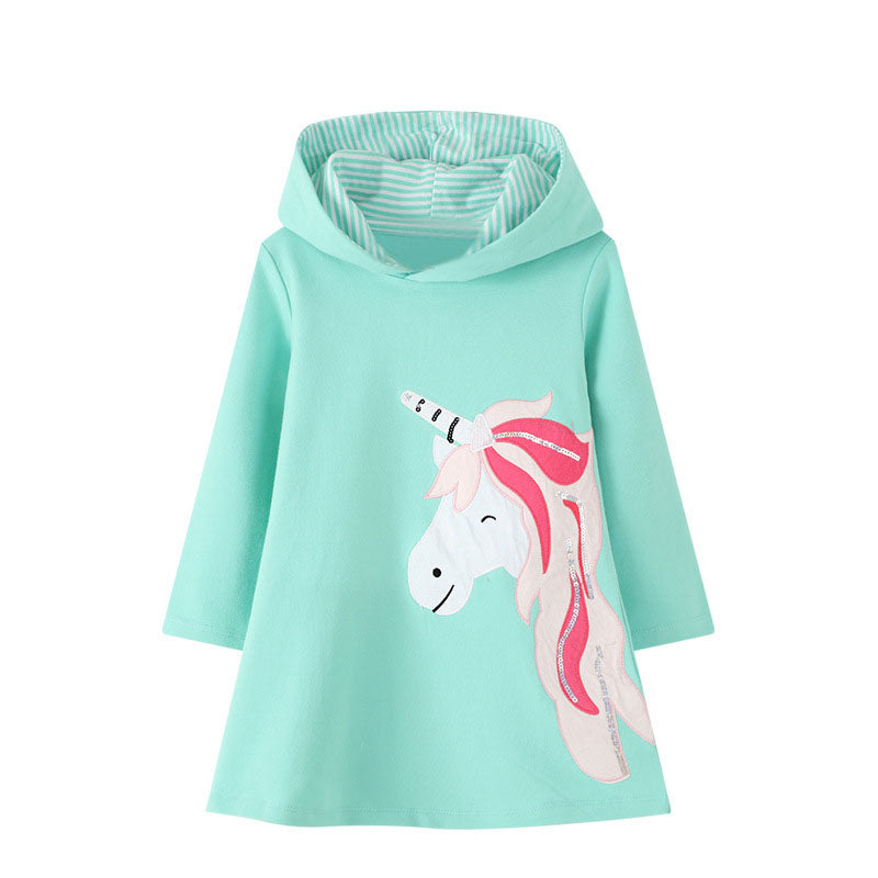 Unicorn Embroidered Patch Hooded Sweater Dress