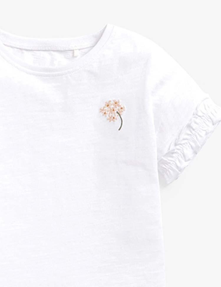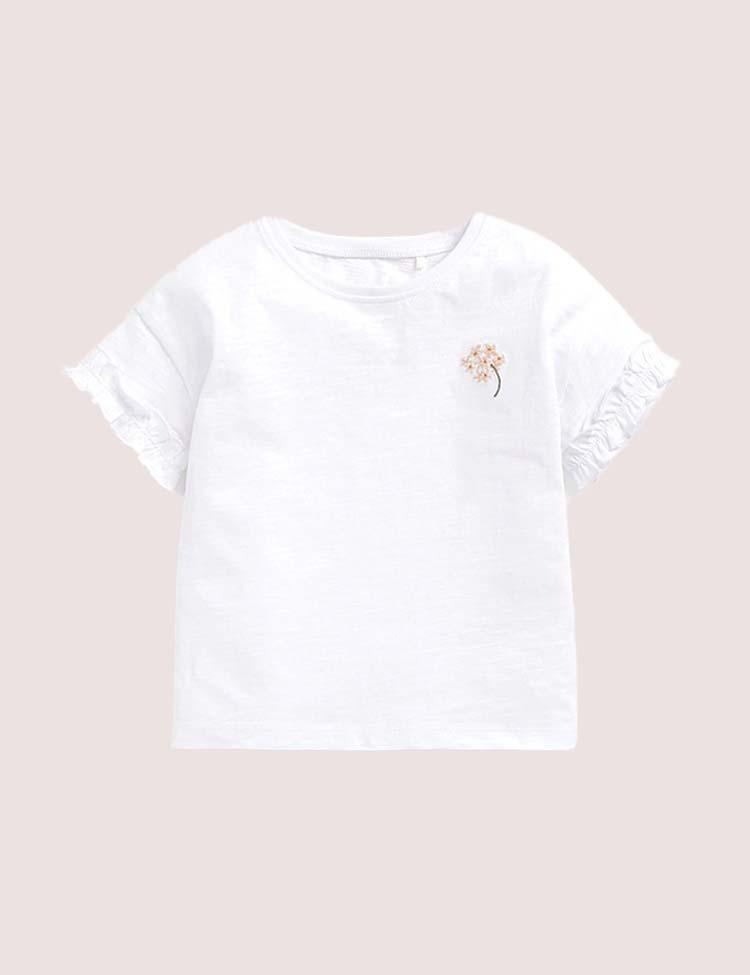 Girl Bee&Flower Embroidered 100% Cotton Ruffle T-shirt