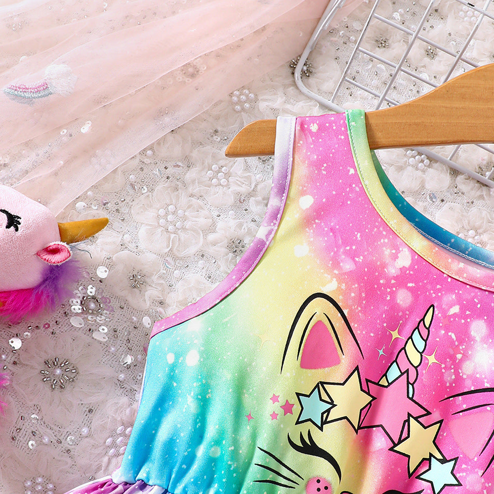 Cat Gradient Printing Dress