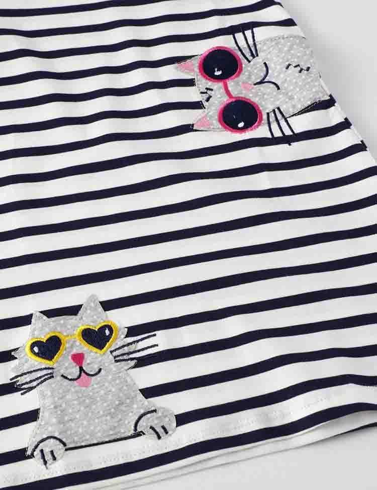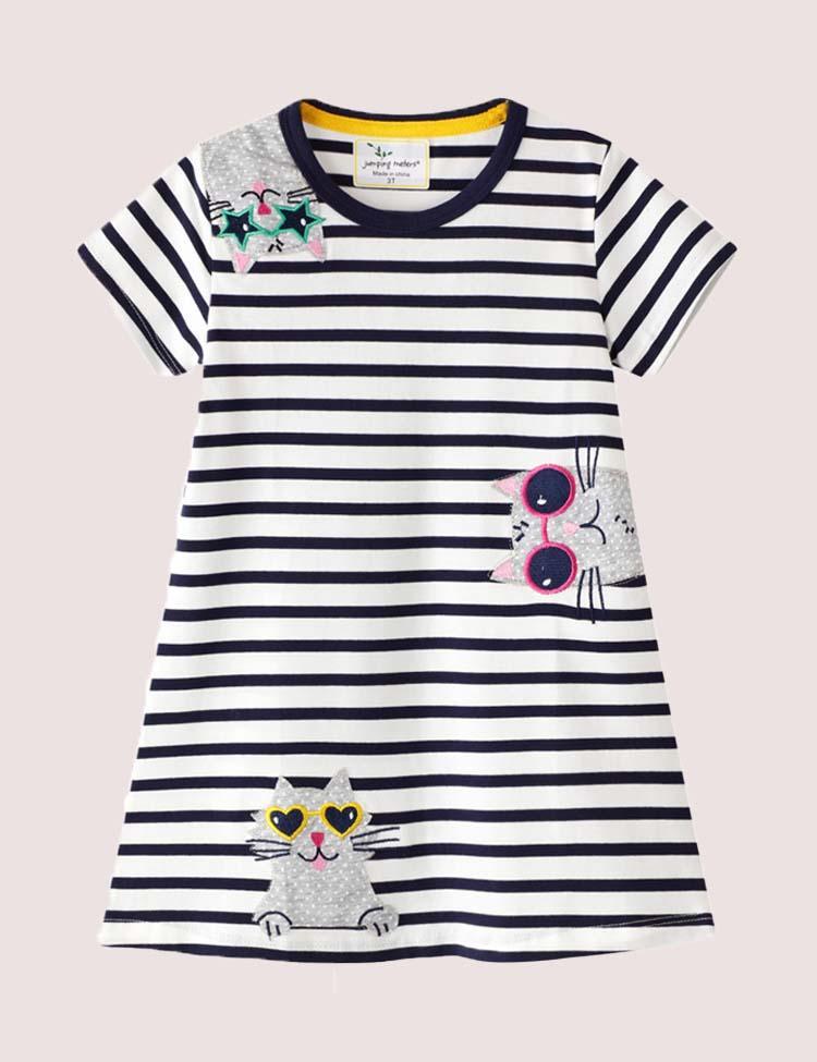 Toddler Girl Cute Cat Appliqu¨¦ Stripe Short Sleeves Dress