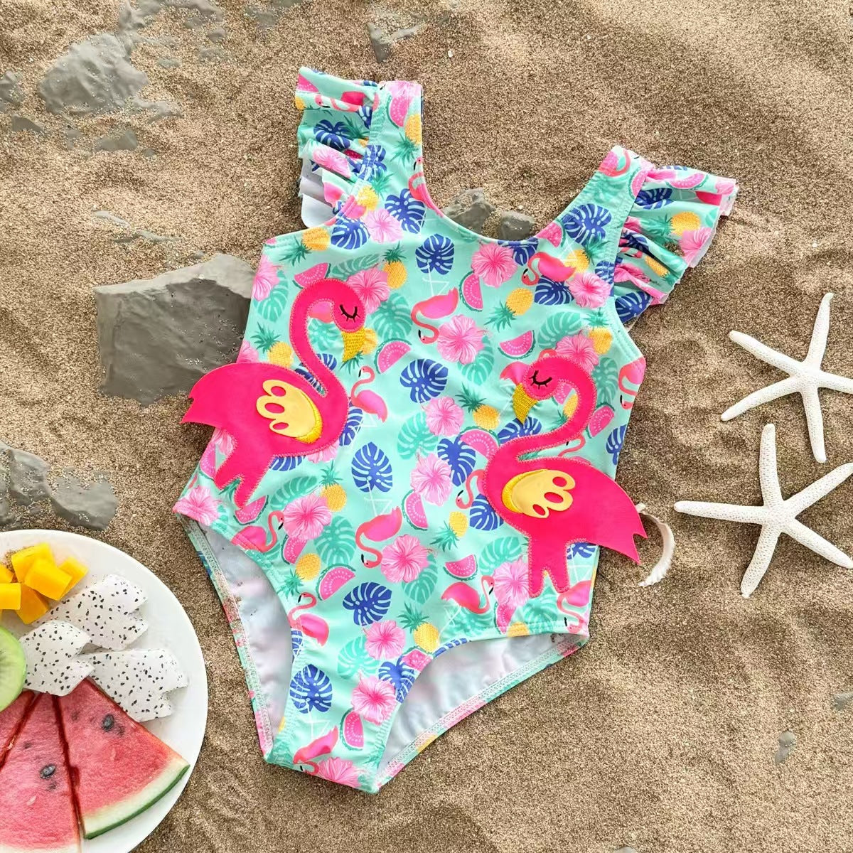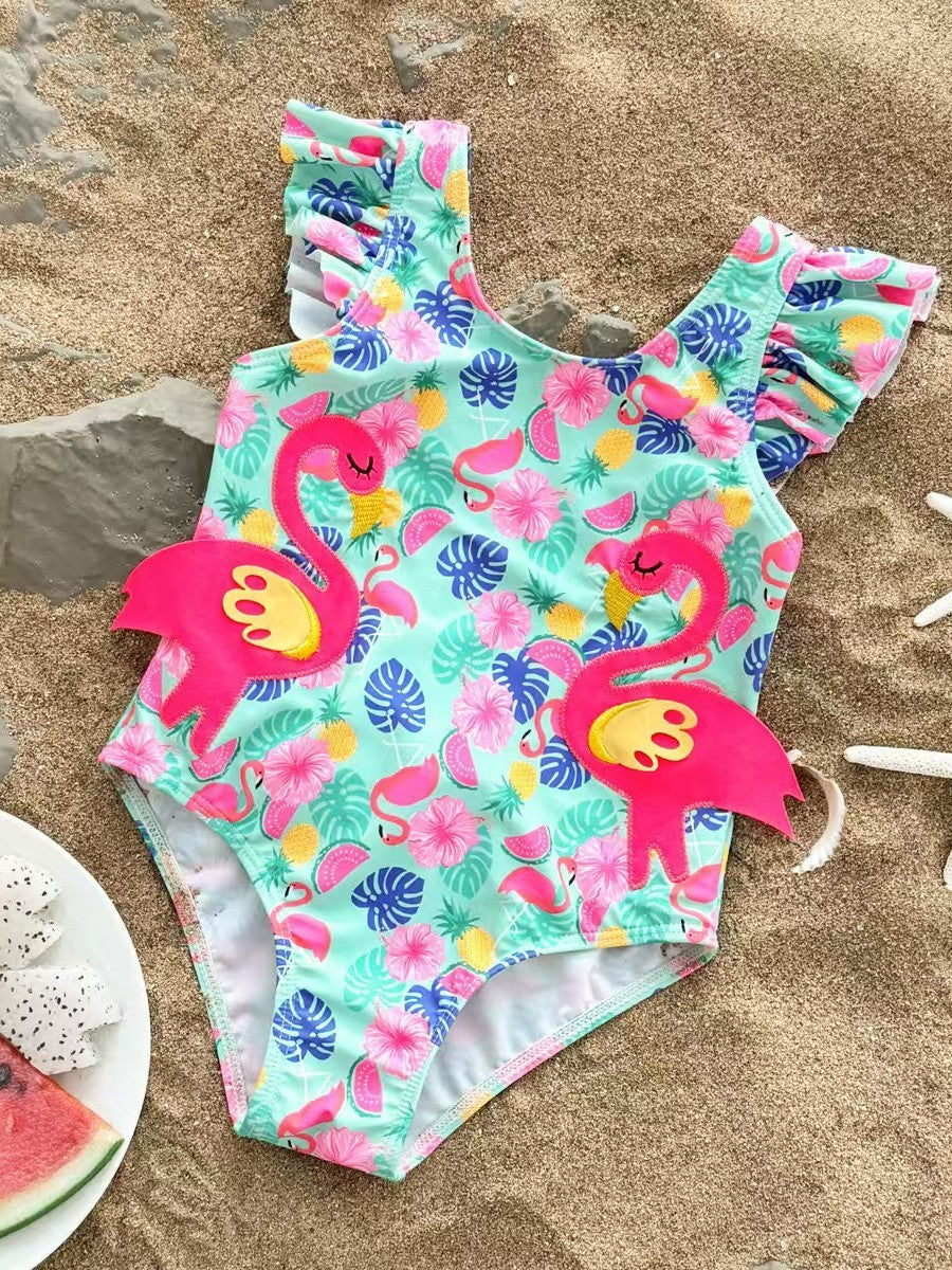 Flamingo Ruffled Cartoon Swimsuit