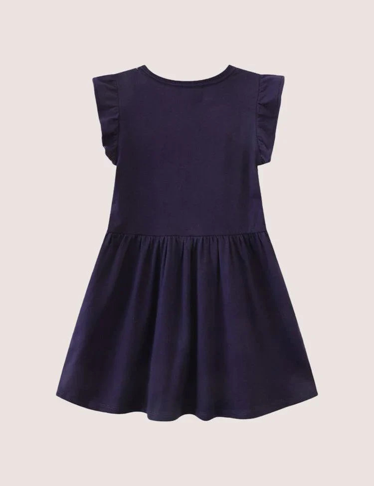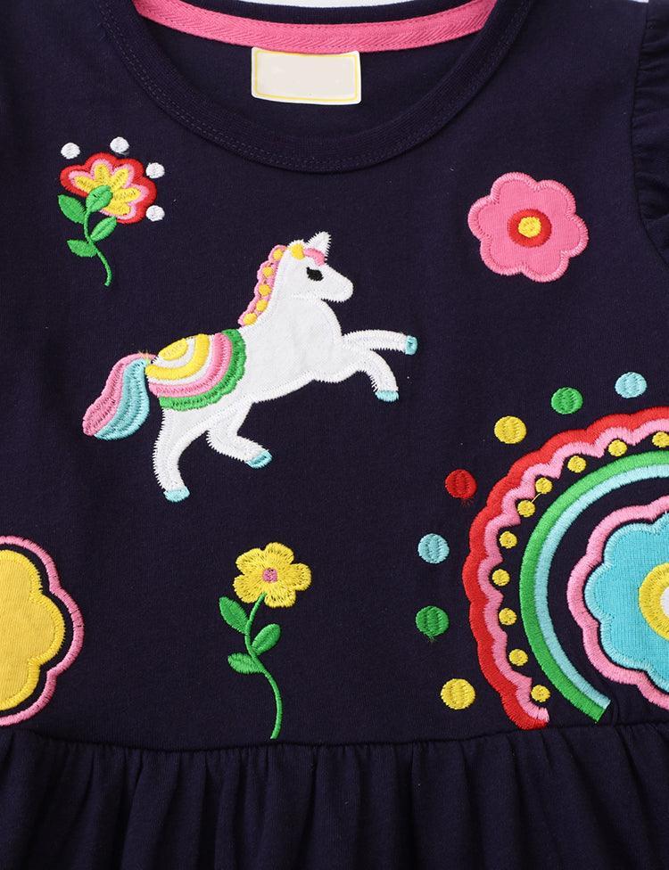 Toddler Girl Rainbow & Unicorn Applique Flutter-sleeve Splice Dress