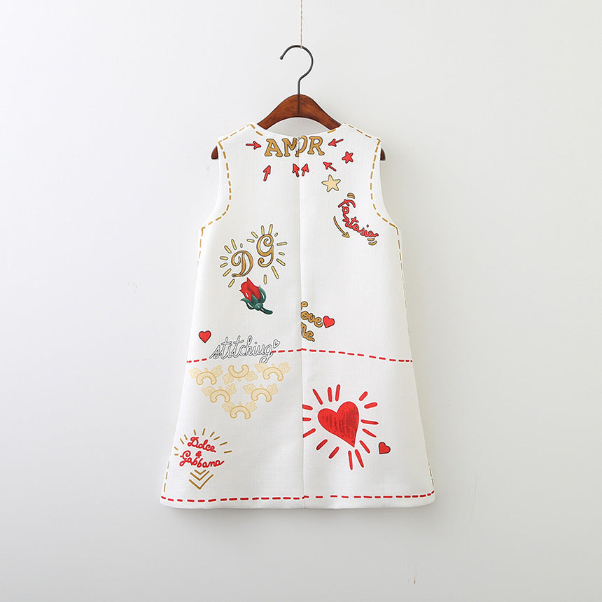 Heart Letter Print Sleeveless Dress