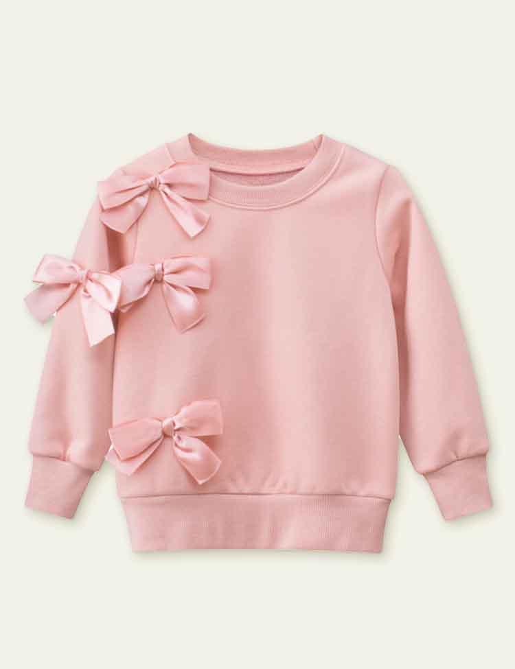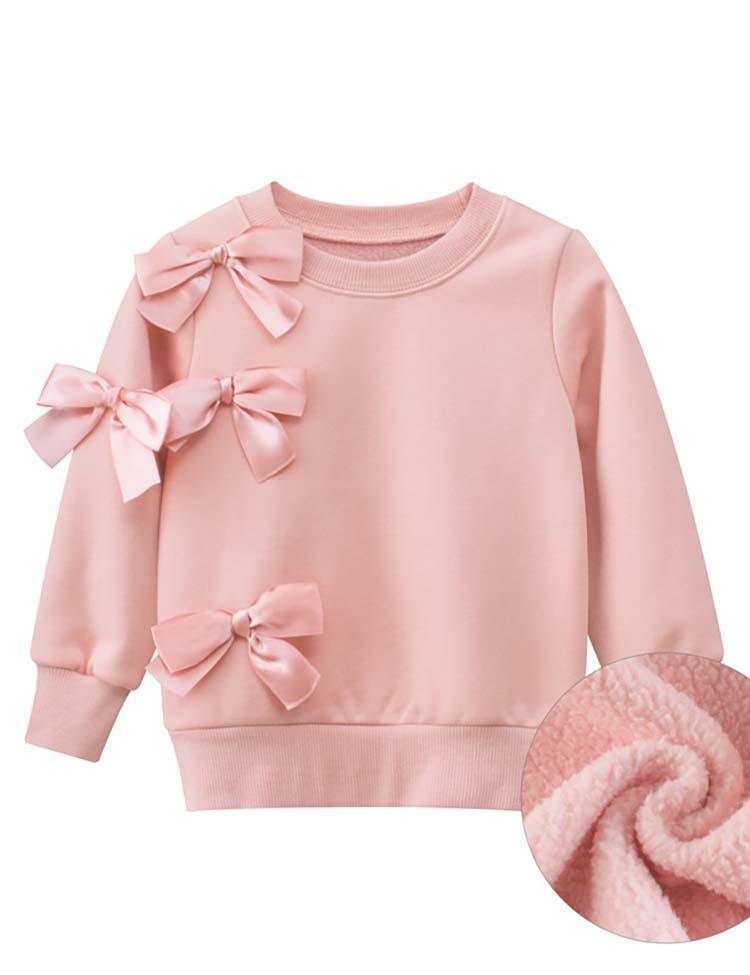 Toddler Kid Solid Color Bow Brushed Pull Over Sweatshirt