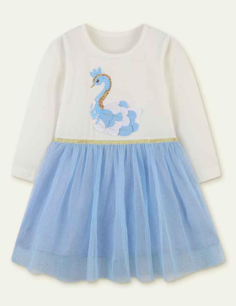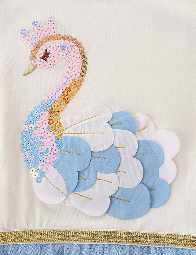Swan Appliqu¨¦ Mesh Long Sleeve Dress