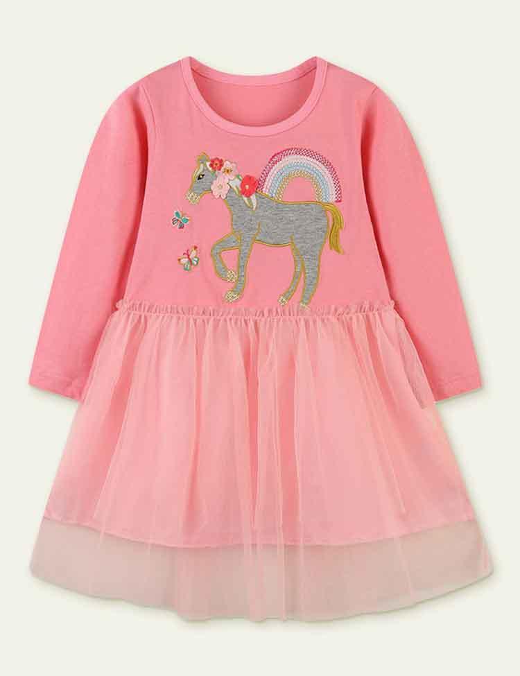 Unicorn Appliqu¨¦ Long Sleeve Dress