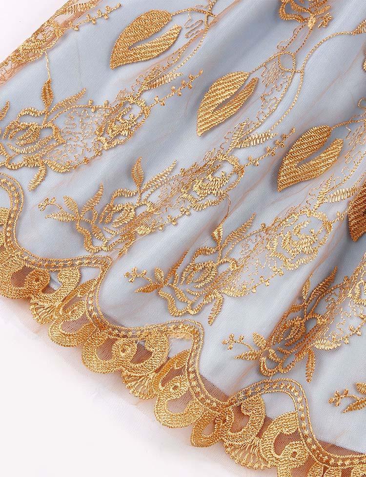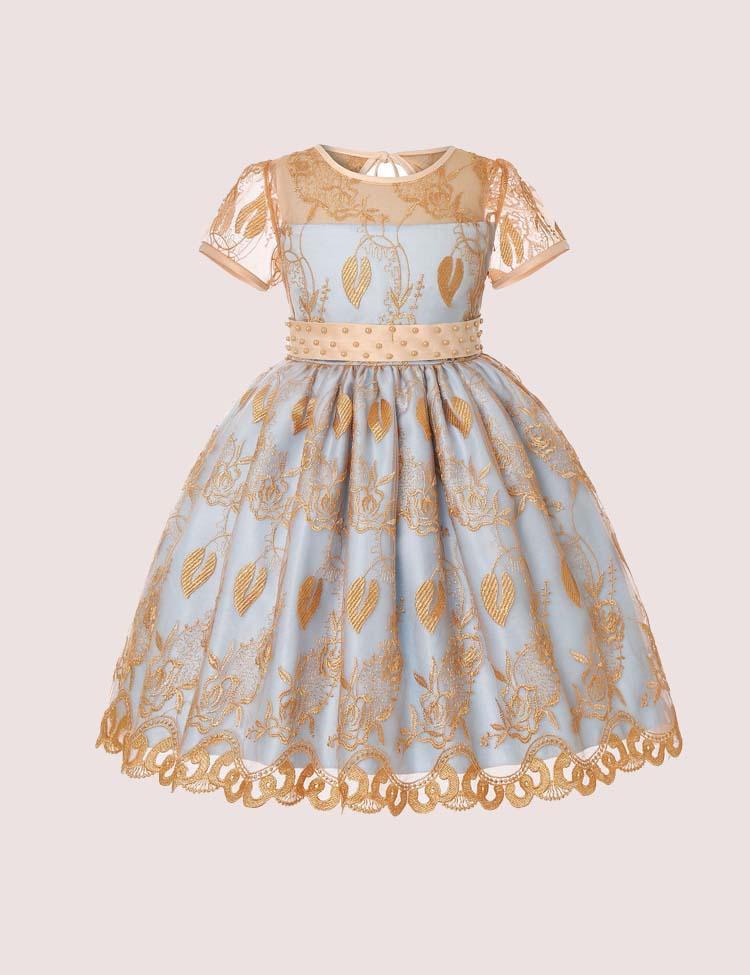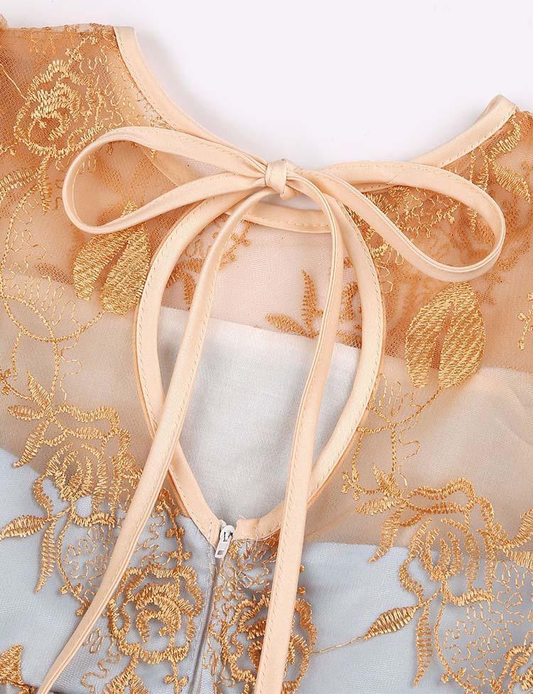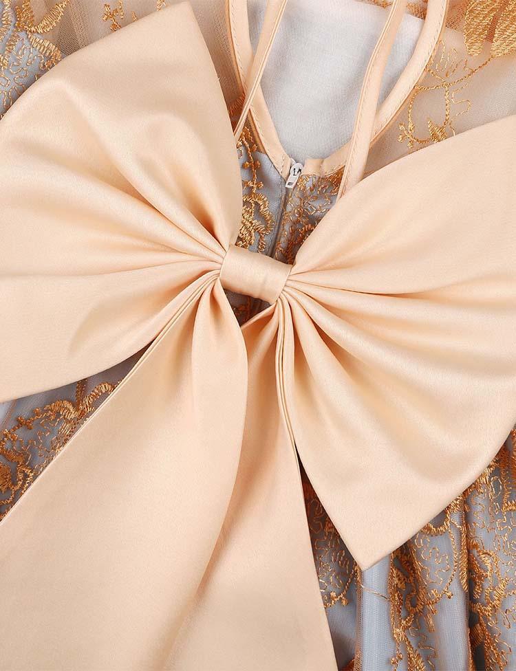 Gold Bow Embroidered Mesh Party Dress