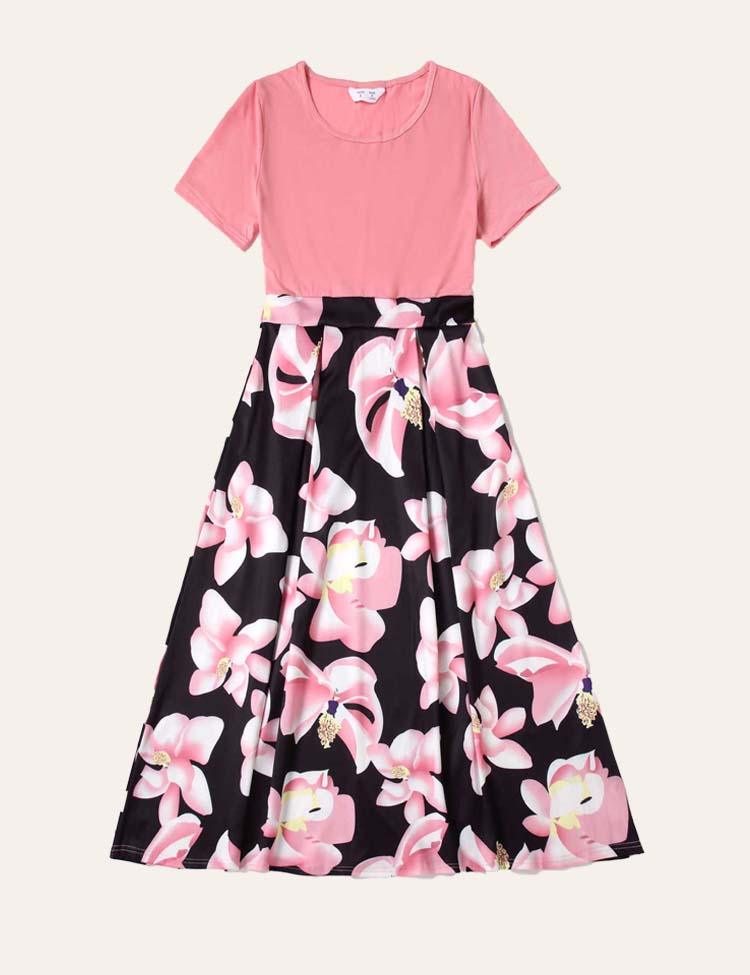 Family Matching Floral Print Dress & Floral Print Short Sleeves Shirt Sets