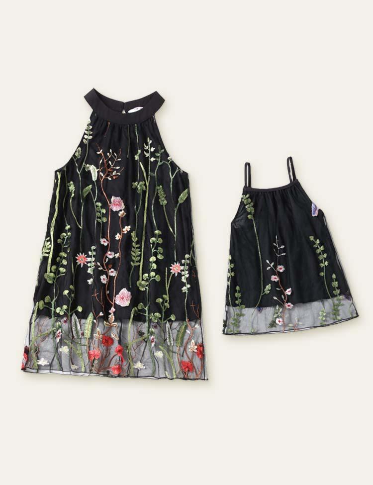 Flower Embroidery Mesh Family Matching Dress