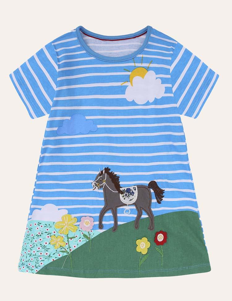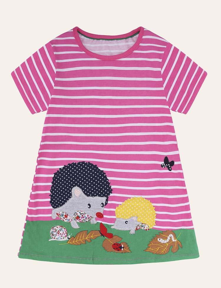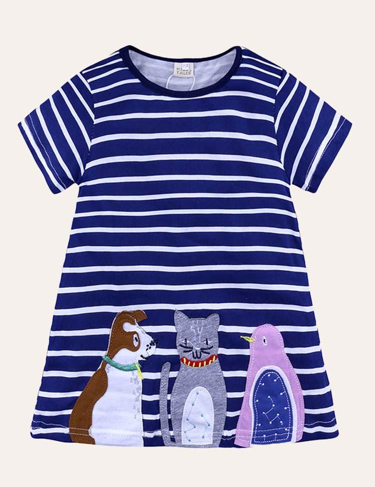 Animal Applique Casual Short Sleeves Striped Dress