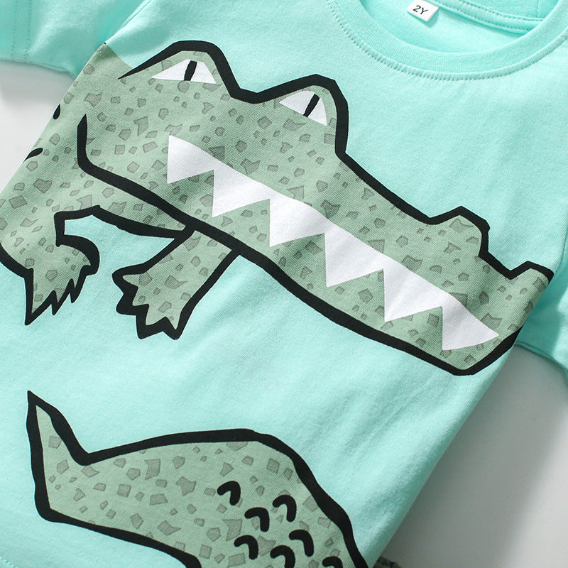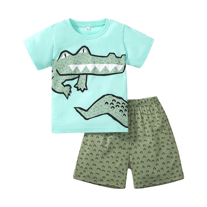 Animal Print Casual Short Sleeve Shorts Suit