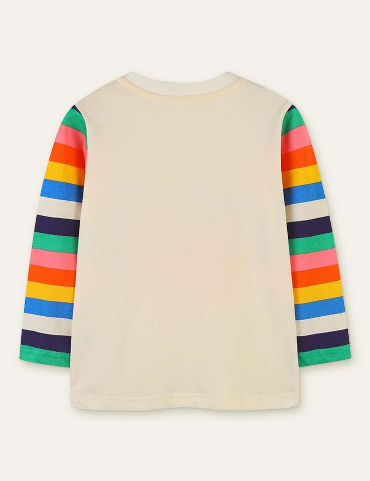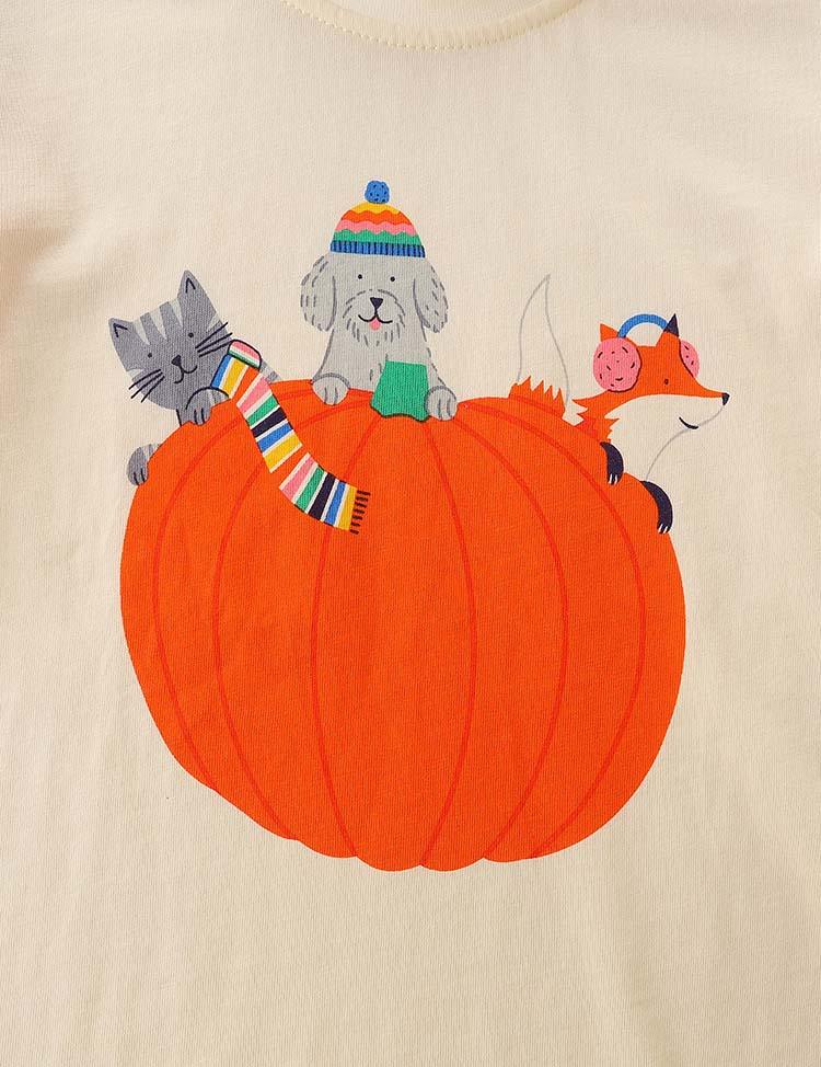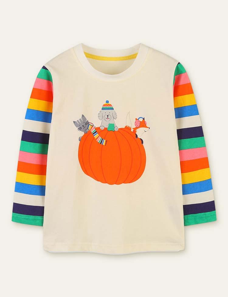 Animal Pumpkin Printed Rainbow Striped T-shirt