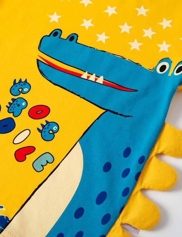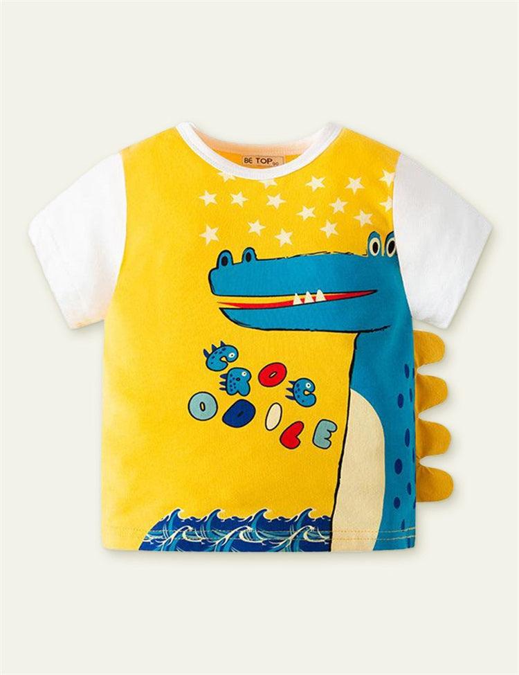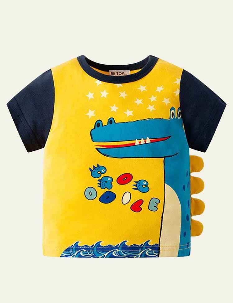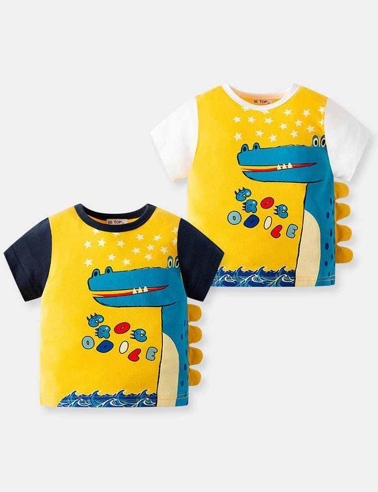 Boy Cartoon Crocodile Fake Two Pieces T-shirt