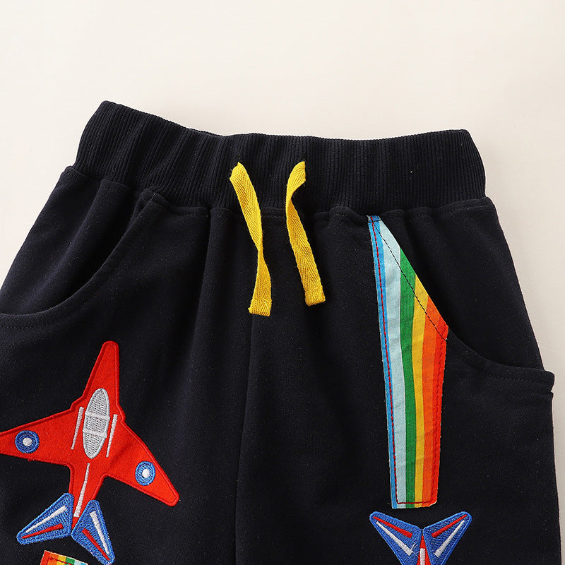 Boys' Shorts Cartoon Aircraft Embroidery Sports Pants