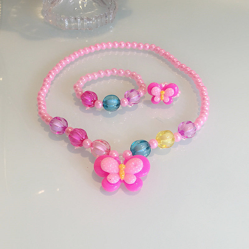 Butterfly children's three-piece necklace accessories