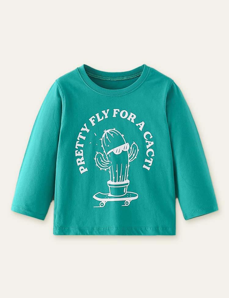 Cactus Cartoon Printed Long-Sleeved T-shirt