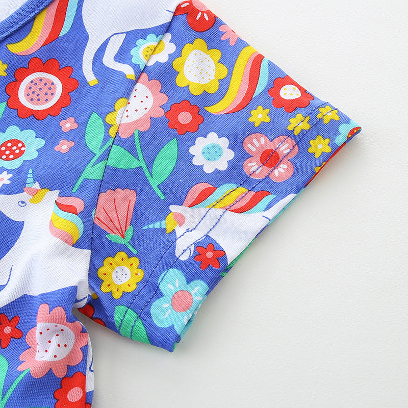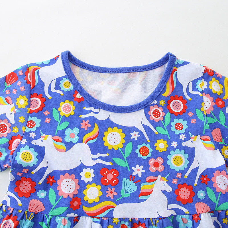 Cartoon animal print Princess dress round neck short-sleeved dress