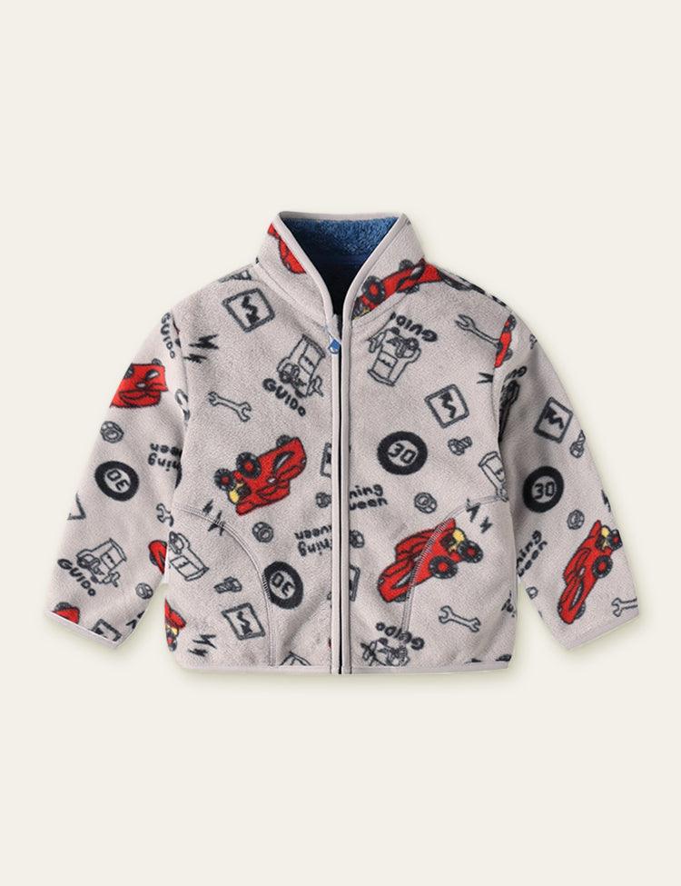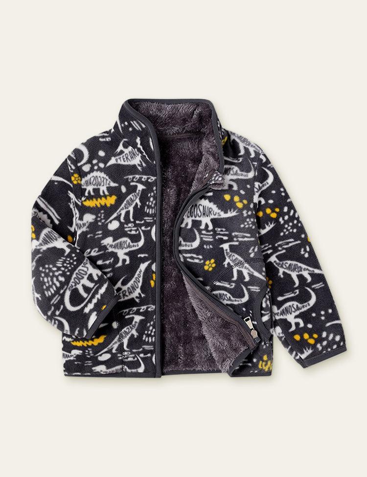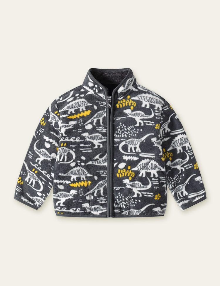 Cartoon Dinosaur Pattern Printed Polar Fleece Zipper Jacket
