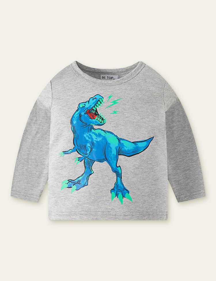Cartoon Dinosaur Printed Long-Sleeved T-shirt