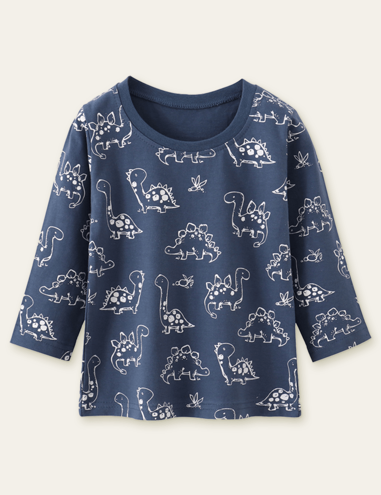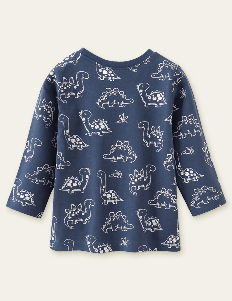 Cartoon Dinosaur Printed Long-Sleeved T-shirt