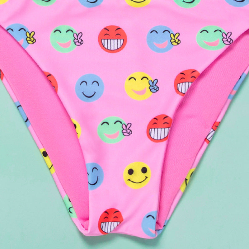Cartoon Expression Girls Swimwear