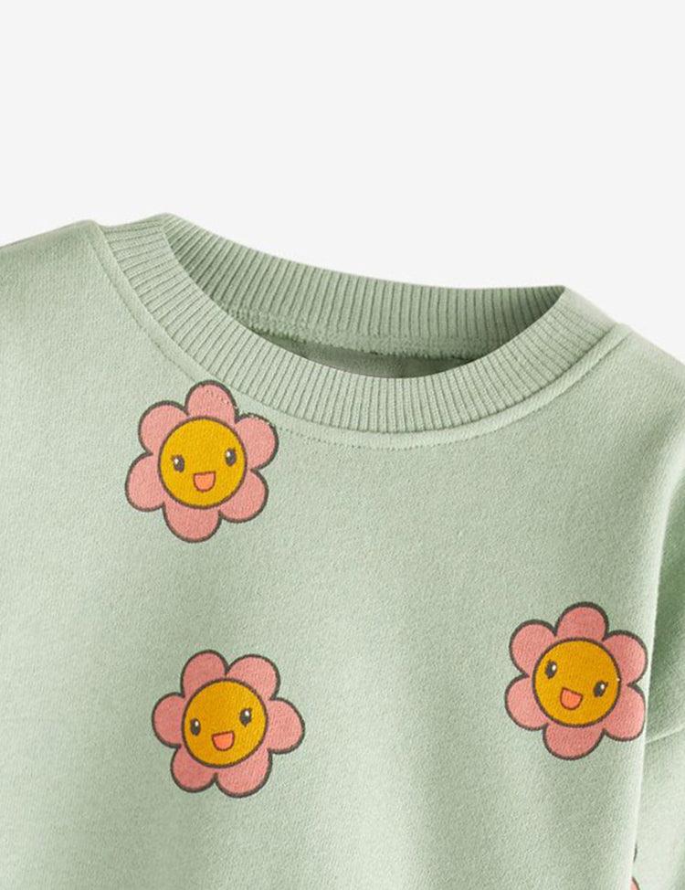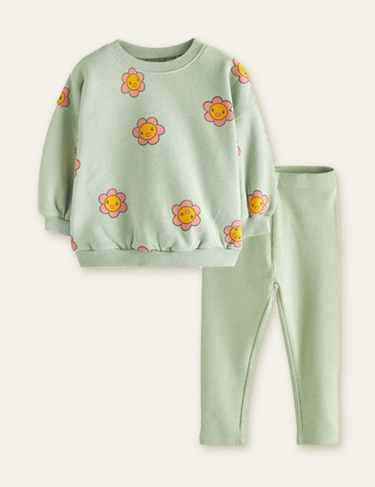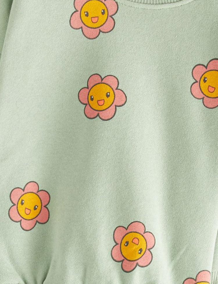 Cartoon Flower Printed Pajamas Set