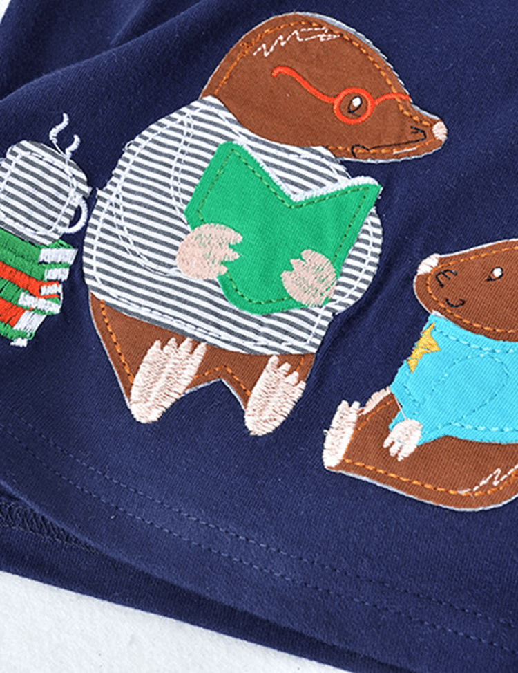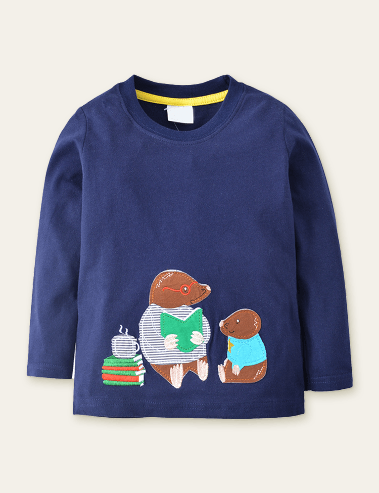Cartoon Mole Appliqu¨¦ Long Sleeve T-shirt