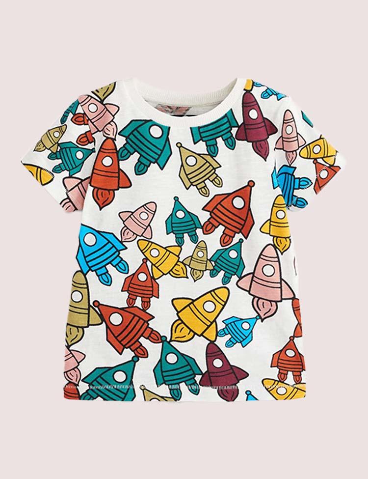 Boy Cartoon Appliqu¨¦ 100% Cotton T-shirt