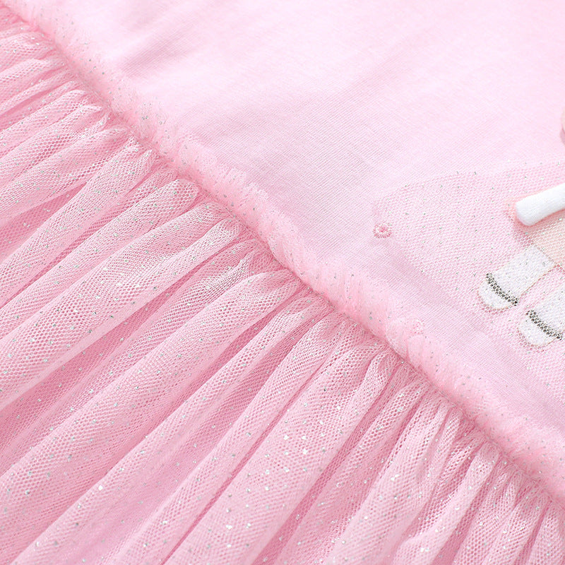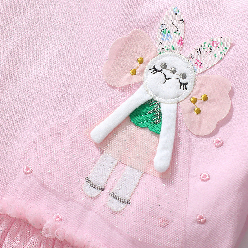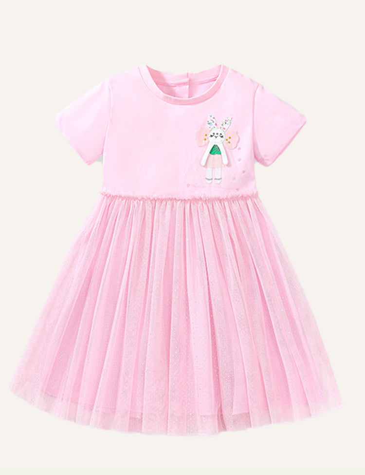 Cartoon Rabbit Embroidered Short Sleeved Gauzy Dress