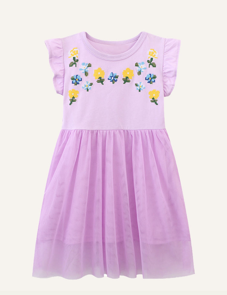 Children's Flower Embroidery Mesh Dress