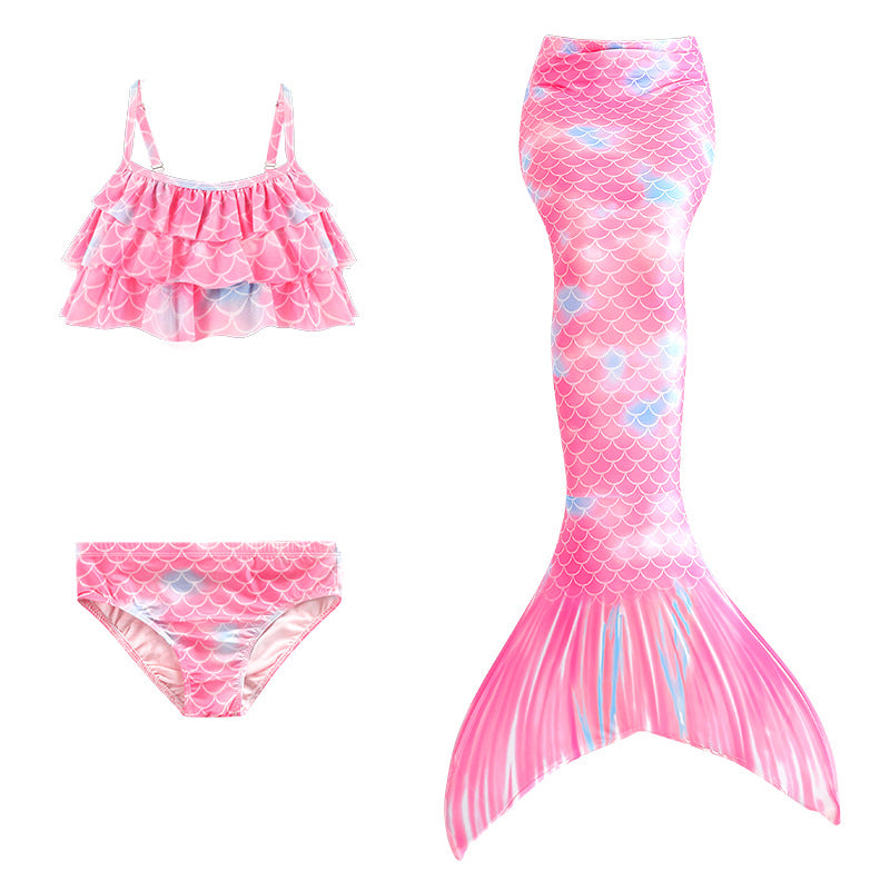 Children's Mermaid Swimsuit Girls' Colorful Scale Suspender Fishtail Swimsuit Three-Piece Set