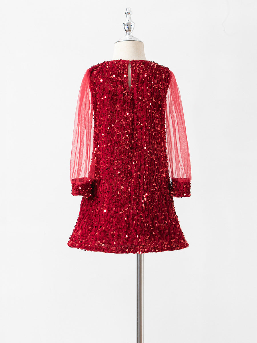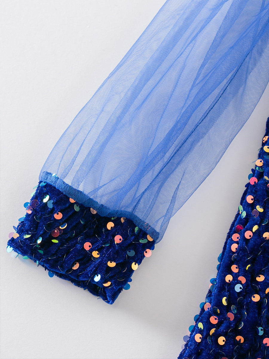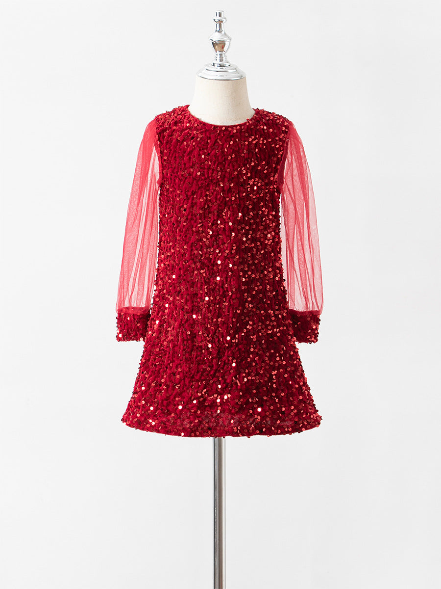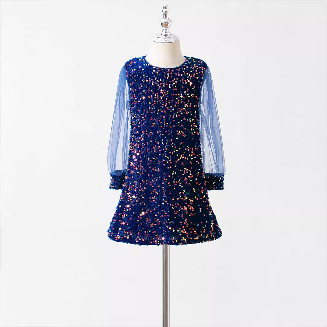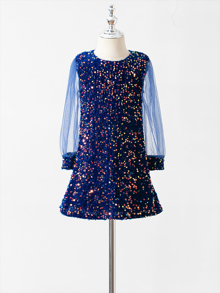 Children's mesh stitching long-sleeved sequined dress princess dress