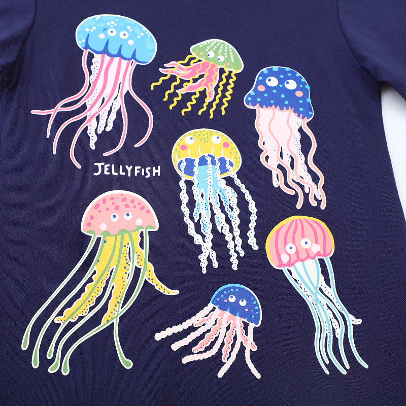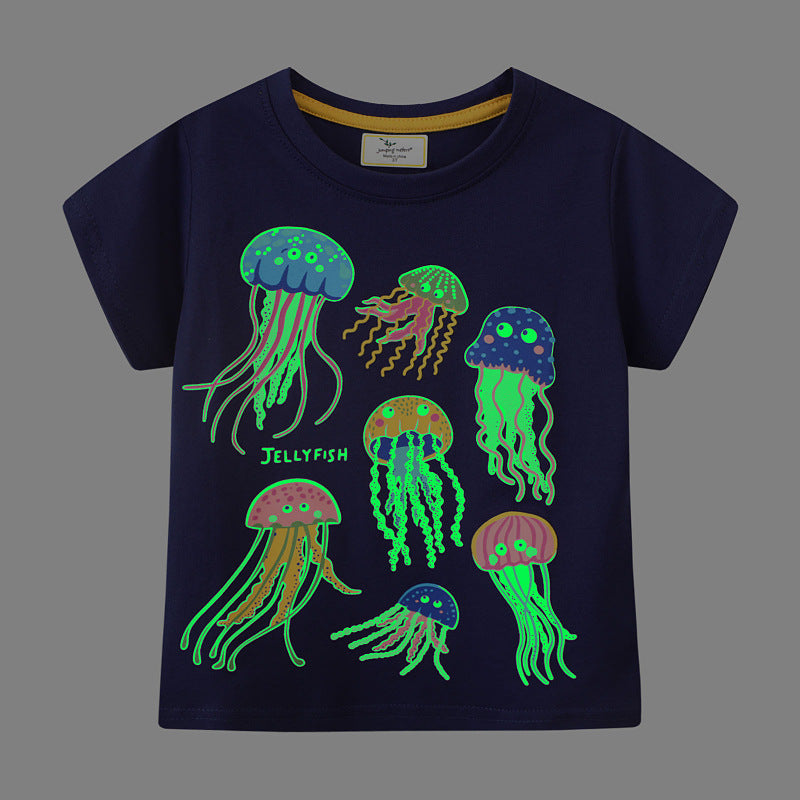 Children's Short-Sleeved T-shirt Summer round Neck Cartoon Top Luminous Pattern