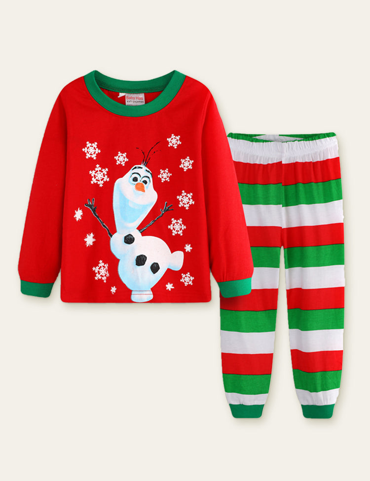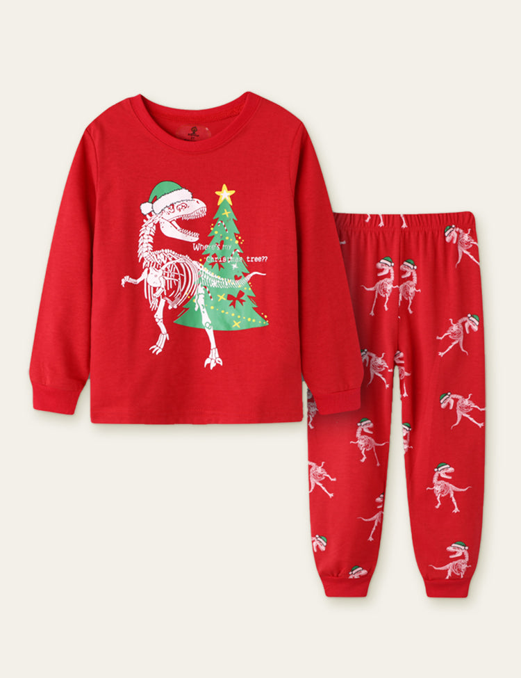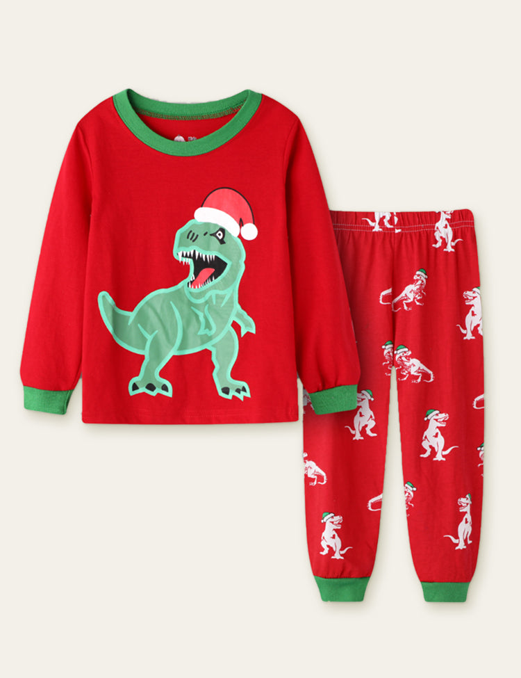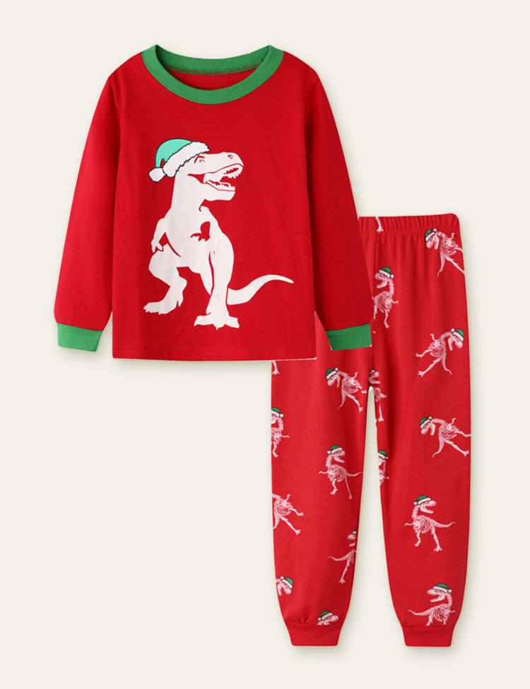 Christmas Cartoon Dinosaur Snowman Printed Pajamas